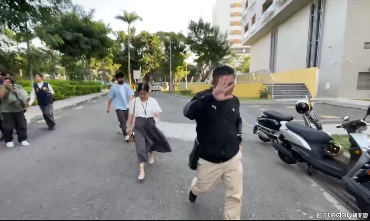 ▲陳姓女研究助理(中)在5日凌晨三點離開警局 。(圖/記者吳奕靖翻攝)