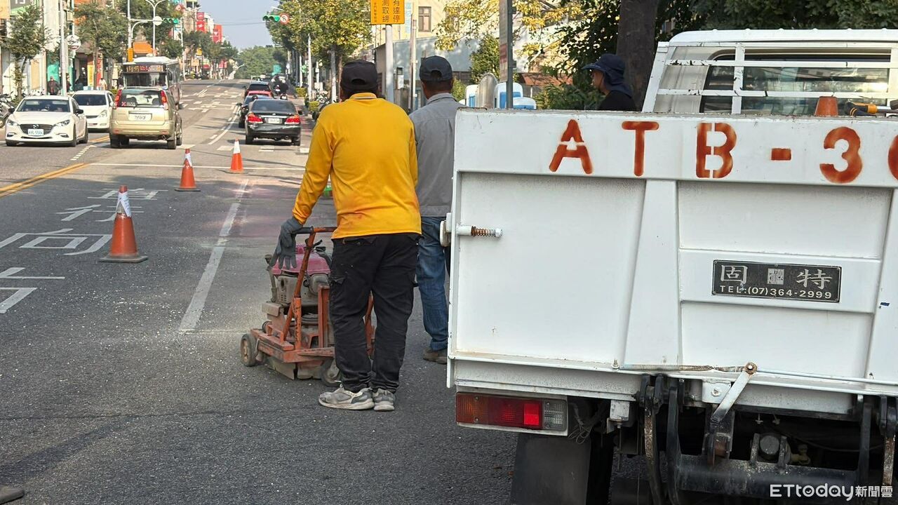 ▲縣府公告今日開始進行標線刨除、劃設改善作業。(圖/記者鄭逢時攝)