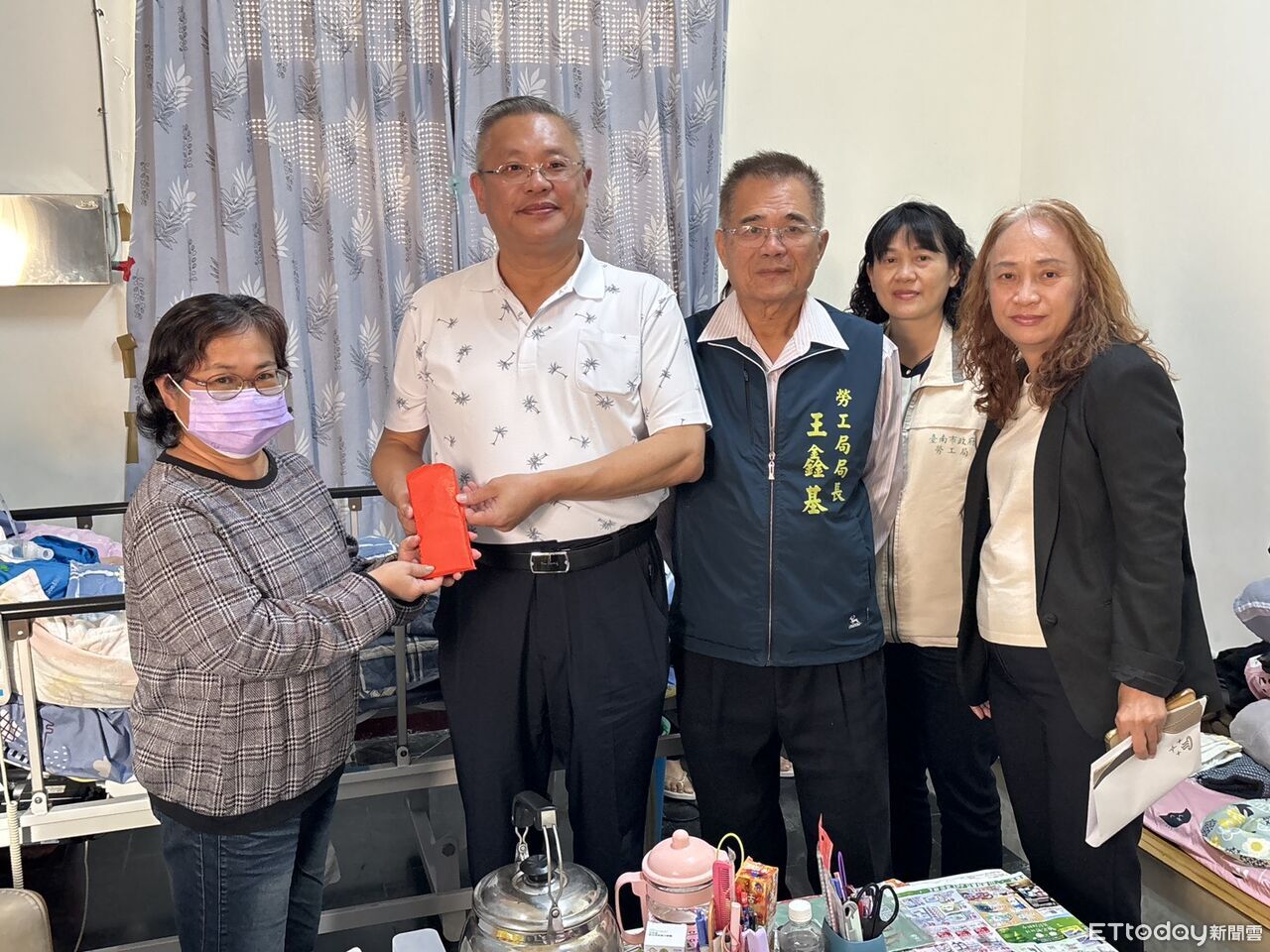 ▲勞工局長王鑫基,攜手五大市級總工會探視職災家庭,致贈慰問金表達關懷。(記者林東良翻攝,下同)