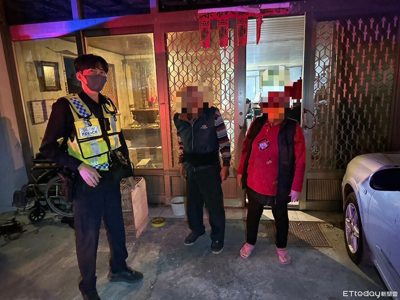 ▲屏東警分局員警護送羅姓阿北兩人平安返家。(圖/記者陳崑福翻攝)