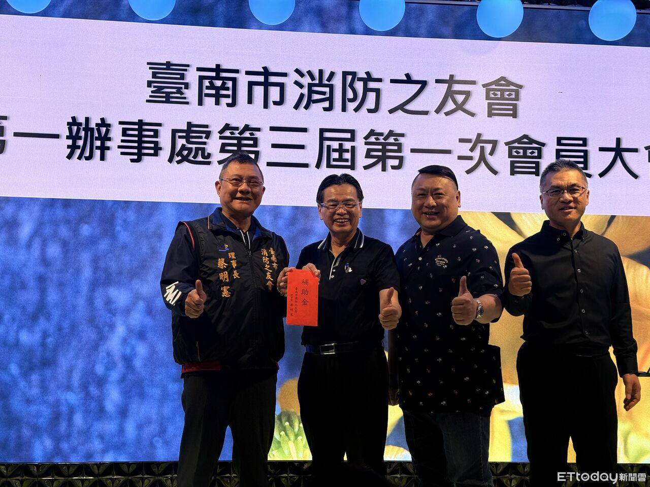 台南市消防之友會第一辦事處11日晚間於海宴餐廳舉辦會員大會,同步舉行「烏樹林風災廢棄物暫置場火災」慰問金頒發儀式,向在半月長戰役中堅守崗位的消防弟兄致意,感謝他們在濃煙與高熱間依然撐住城市的安全防線。