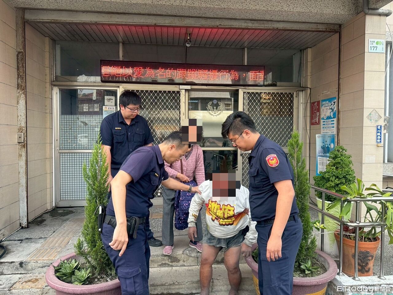 由於男子無法與人正常溝通,員警評估後先將老翁帶返勤務處所。期間,警員何泓駒自掏腰包提供餐點,協助男子補充體力,並通報縣府社會處社工到場協助,並聯繫相關單位查詢是否有相符的失蹤人口通報。所長邵軾傑亦率同警員何泓駒返回發現地點,搜尋是否有可供辨識身分的遺留物品;警員張育敬、鍾偉成、陳俊嘉則於所內逐筆比對失蹤人口資料,全力釐清男子身分。