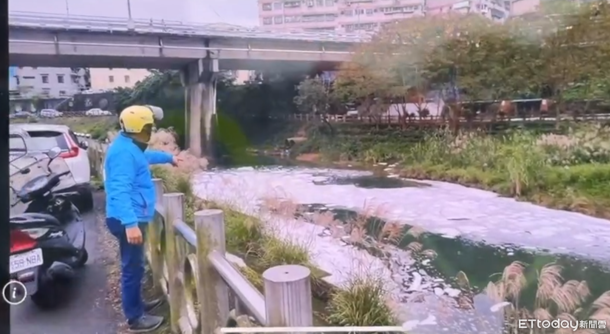 ▲基隆暖暖溪出現大量白色泡沫,疑似有廠商偷排汙水。(圖/記者郭世賢翻攝,下同)