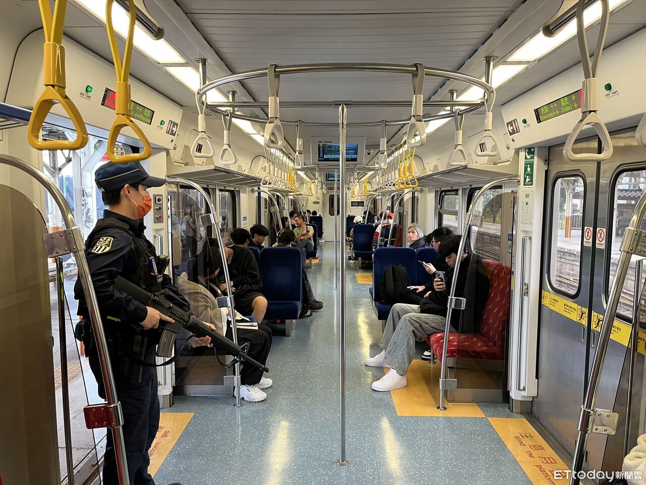 ▲鐵路警察出動長槍,於高雄車站加強巡邏。(圖/記者許宥孺翻攝)