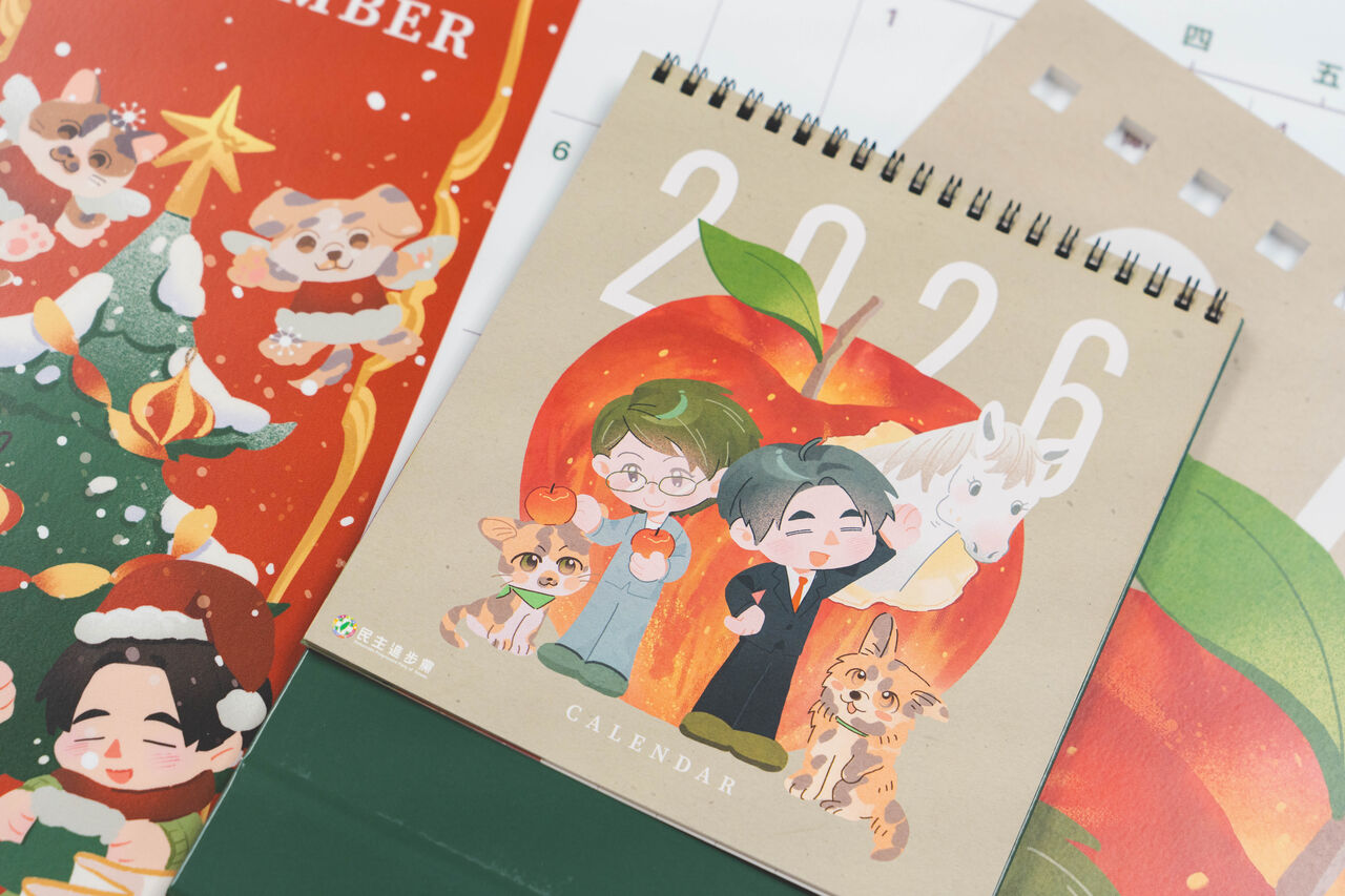 新的一年即將來到,民進黨今(23日)宣布推出2026年《平安順心護台灣》政績桌曆,這次特別邀請2024總統大選廣受好評的貓狗徽章設計師操刀,以溫暖細膩的插畫風格,結合執政團隊的好成績與好政策,呈現民進黨政府在經濟、民生、國安、建設等領域的豐碩成果,凸顯即便國會紛亂,執政團隊仍然穩健施政。桌曆即將於24日上午10時起,於民進黨中央黨部限量開放領取。