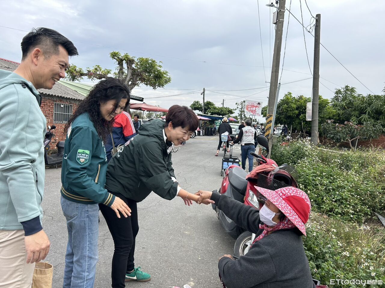 ▲立委陳亭妃清晨現身善化牛墟掃街拜票,逐攤向鄉親打招呼、握手寒暄,展現行動力。(記者林東良翻攝,下同)