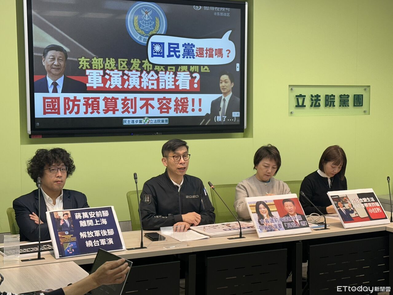 民進黨團幹事長鍾佳濱、副幹事長沈伯洋、副幹事長范雲、副書記長張雅琳今(29日)召開「軍演演給誰看?國民黨還擋嗎?國防預算刻不容緩」記者會,並於會後回應輿情。