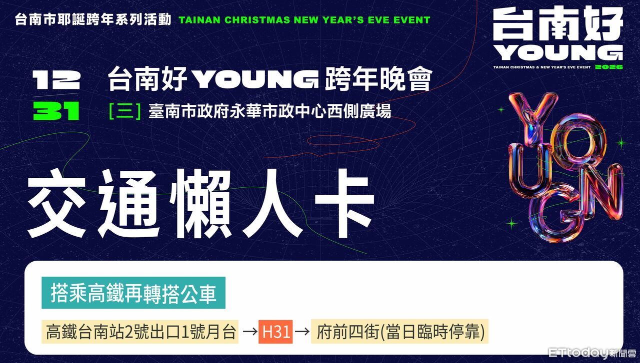 ▲「台南好young跨年晚會」31日於永華市政中心西側廣場登場,市府提前公布交通管制與接駁資訊,呼籲民眾提早規劃行程。(記者林東良翻攝,下同)