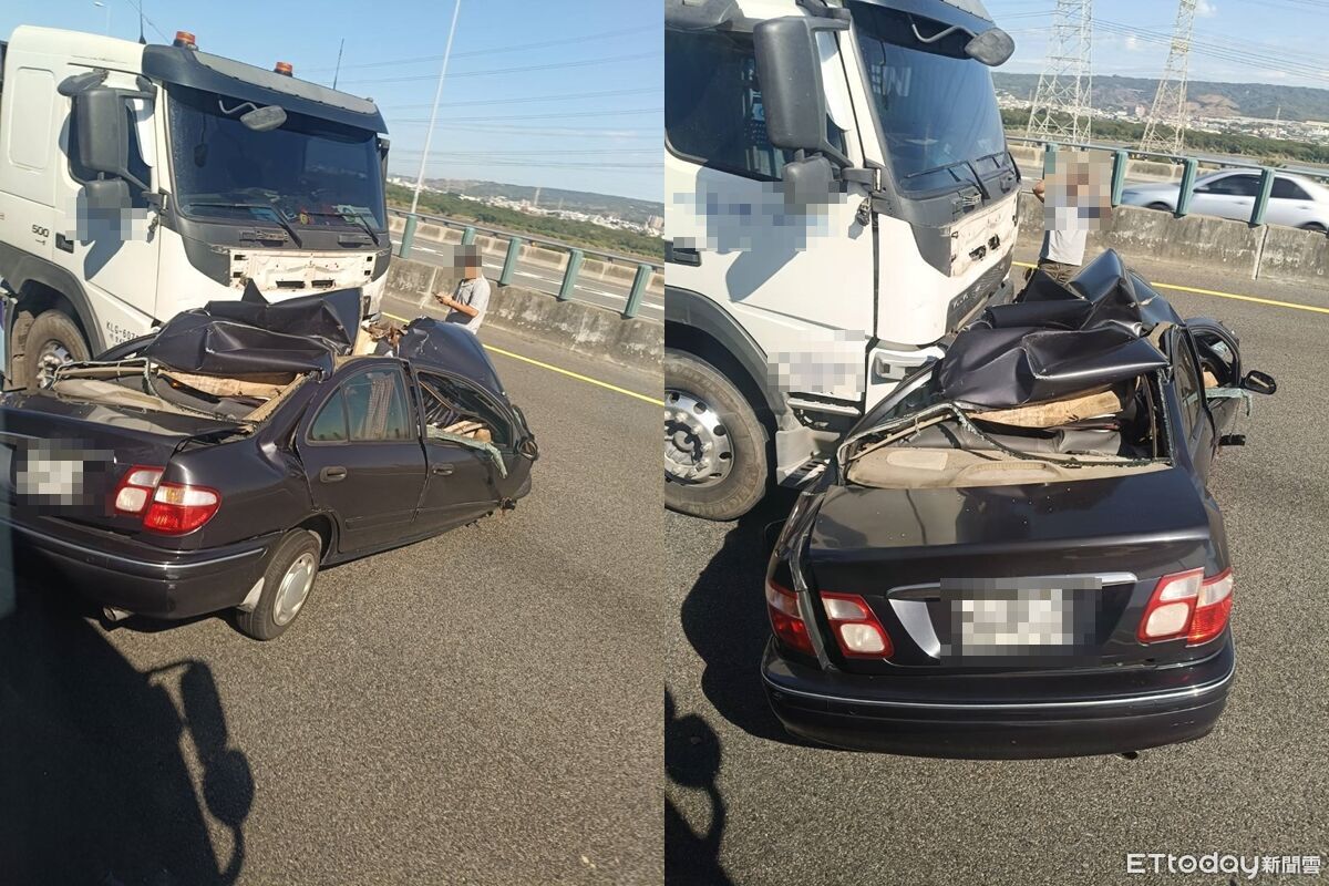 國道3號南下192公里處(和美路段)29日中午12時許發生奪命車禍!一輛自小客車因不明原因與大貨車發生碰撞,由於撞擊力道猛烈,整台車嚴重變形,警消獲報趕抵現場,出動破壞器材將40歲駕駛救出,但人已失去呼吸心跳。