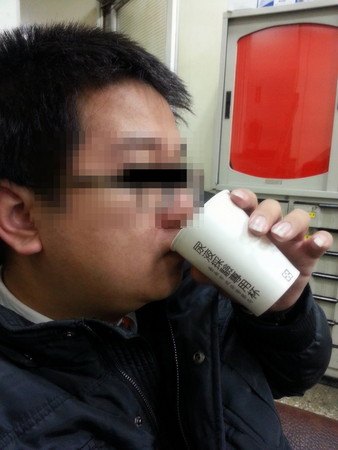 ▲警察泡茶請客人喝,竟拿尿液採驗專用杯。(圖/翻攝PTT)