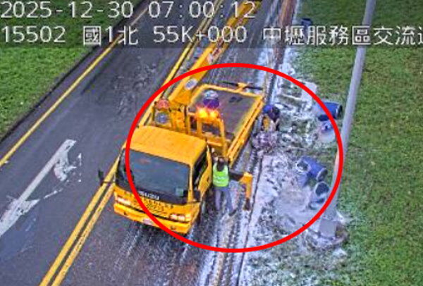 高公局說,國1北向進中壢服務區目前封閉,請用路人下交流道到附近超商或加油站休息,造成不便,敬請見諒;6時25分成立緊急應變小組,現場員警與工務段人員積極處理中。
