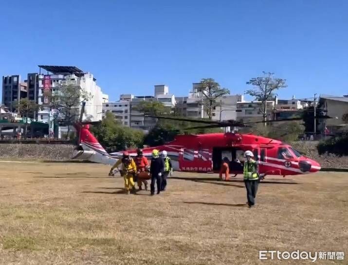 ▲攀登雪山西稜因大雪失溫罹難的山友,30日由空勤黑鷹直升機前往載運後送至東勢河濱公園。(圖/記者李陳信得翻攝,下同)