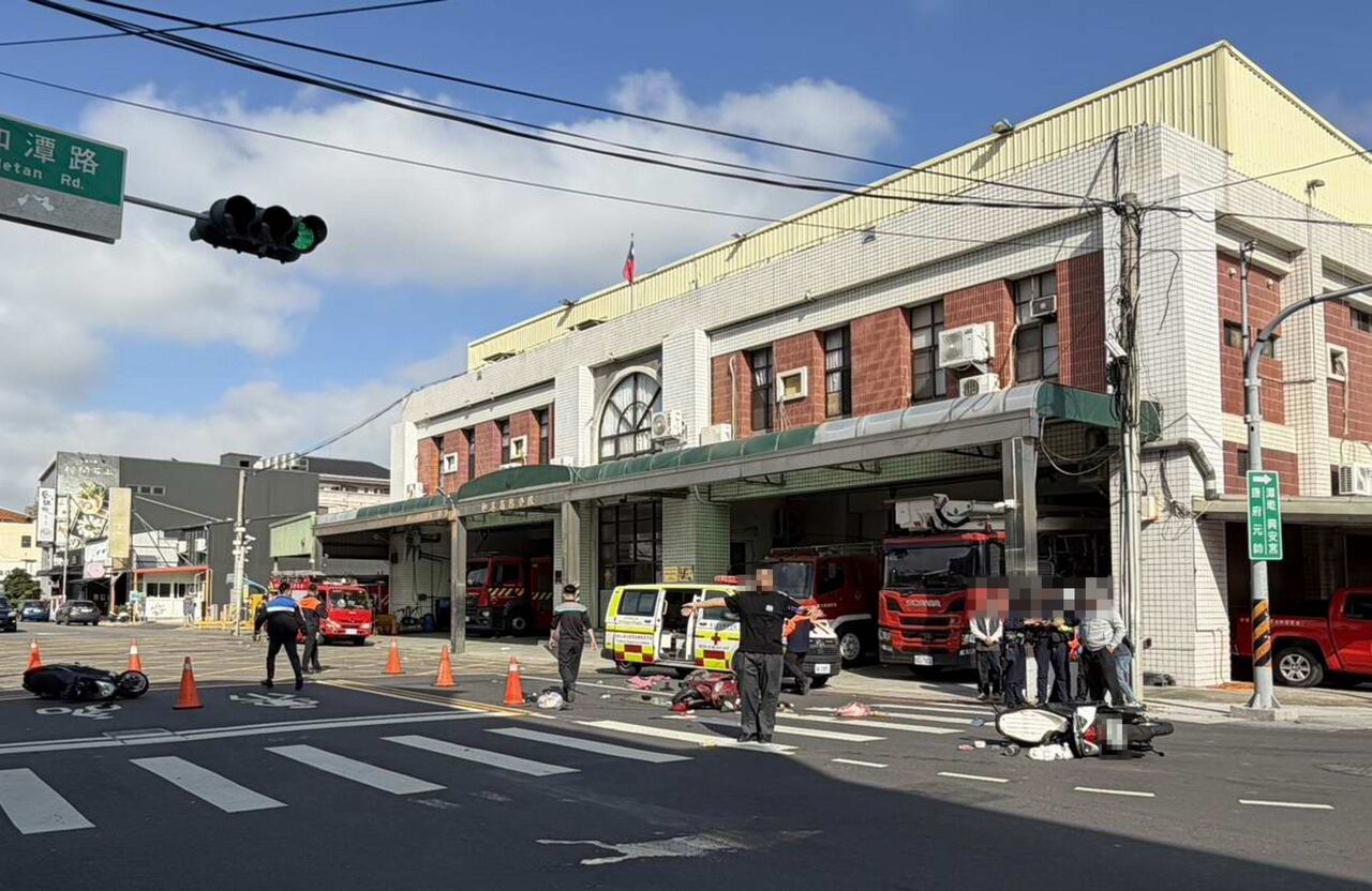 驚險!彰化縣和美消防分隊正門口前,今(30)日上午發生一起三輛機車撞成一團,所幸消防隊員第一時間聽到巨大撞擊聲響,立刻衝出救援,讓傷者得以在最短時間內獲得救治。這場車禍造成一名年約71歲婦人腿部骨折、緊急送醫,詳細事故原因正由警方調查中。