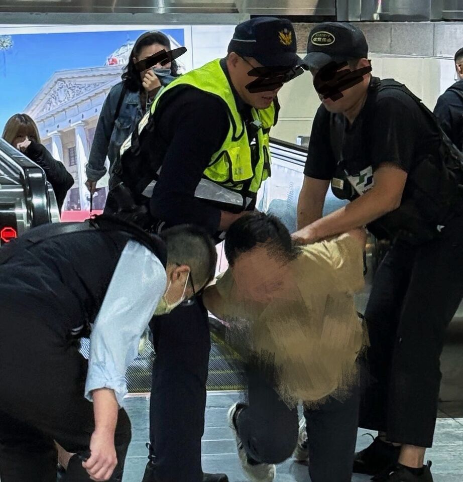 ▲陳男在台北車站四處亂竄,還按下緊急服務鈴,遭站務員噴辣椒水制伏。(圖/網友Chris1204提供,請勿隨意翻拍,以免侵權。)