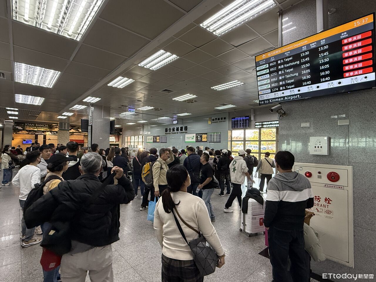▲金門航空站湧入大批候補旅客。(圖/記者鄭逢時攝)