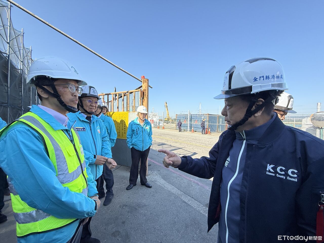 ▲金門縣議會現勘料羅港碼頭進出口倉庫。(圖/記者鄭逢時攝)