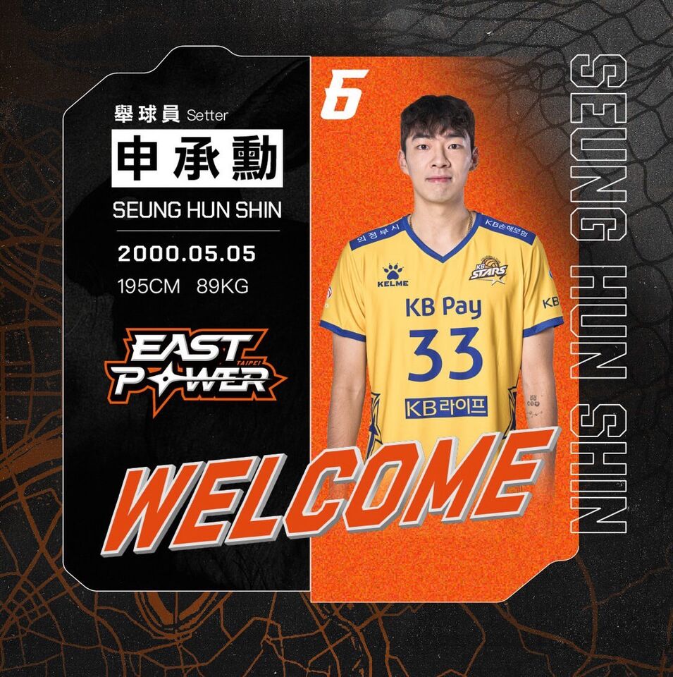 臺北伊斯特職業排球隊於2026年的第一天宣布陣容補強,韓國籍舉球員申承勳(Shin Seung-Hun)將於本賽季下半季以借將身分加入球隊。