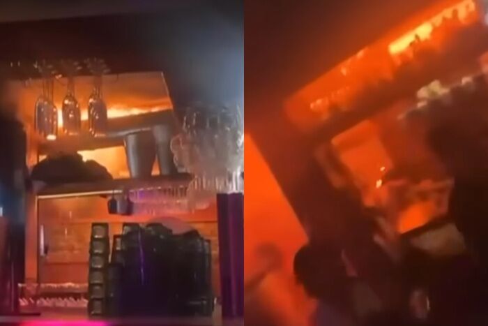 目擊者艾瑪(Emma)與阿爾班(Albane)指出,當時一名男酒保將女酒保扛在肩上高舉香檳,未料瓶上的火花直接噴向低矮的纖維木造天花板。