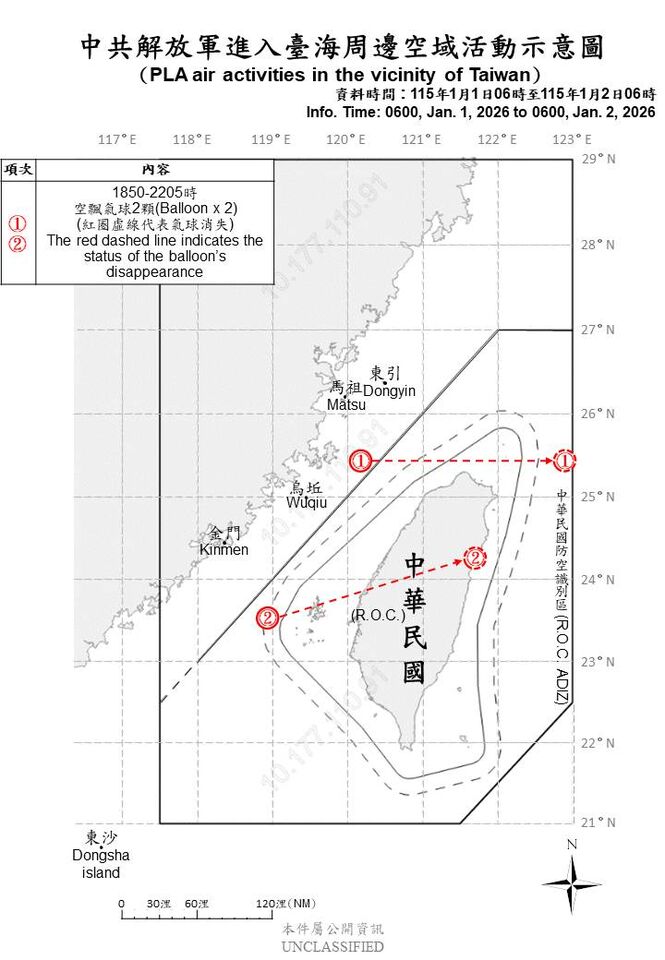 中國國防部12月31日片面宣稱對台針對性演習結束,並稱已完成各項任務。然而,共機艦擾台並未隨之停歇,據國防部統計,自去年12月29日至1日上午六時的72小時內,國軍總計偵獲中共210架次軍機。而國防部今(2日)公布共機最新動態,自1日上午6點到今上午6點,24小時內並無共機侵擾,偵獲共艦6艘、公務船1艘持續在台海活動。