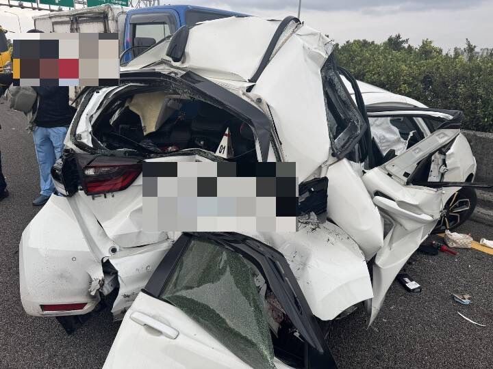 除了受困的白色自小客車,事故中另一輛轎車及小貨車駕駛與乘客均未受傷拒絕送醫。國道公路警察局第三公路警察大隊初步了解,事故佔用內側車道,直至下午4時39分才完全排除,恢復通行,追撞原因尚待調查。