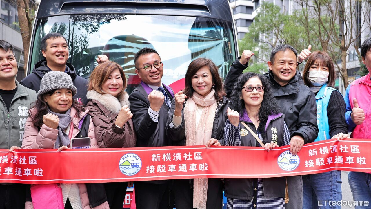 ▲基隆新橫濱社區接駁車雙線通車,副市長邱佩琳(右4)肯定通勤動線改善。(圖/記者郭世賢翻攝,下同)