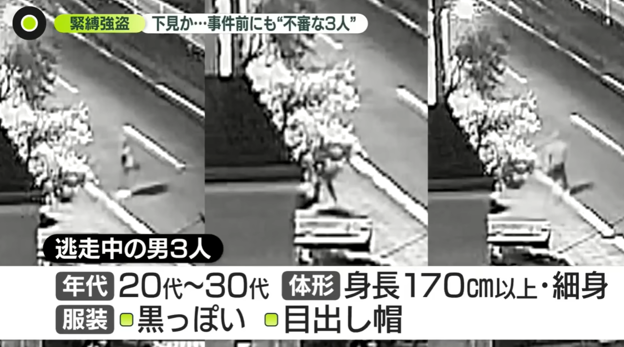 根據警方調查,事發當天凌晨1時許,3名嫌犯闖入靜岡縣長泉町納米里一處民宅,以膠帶綑綁80多歲被害老夫婦的口鼻和雙手,奪走屋內約1000萬日圓(約新台幣200萬元)現金後,迅速逃離現場。
