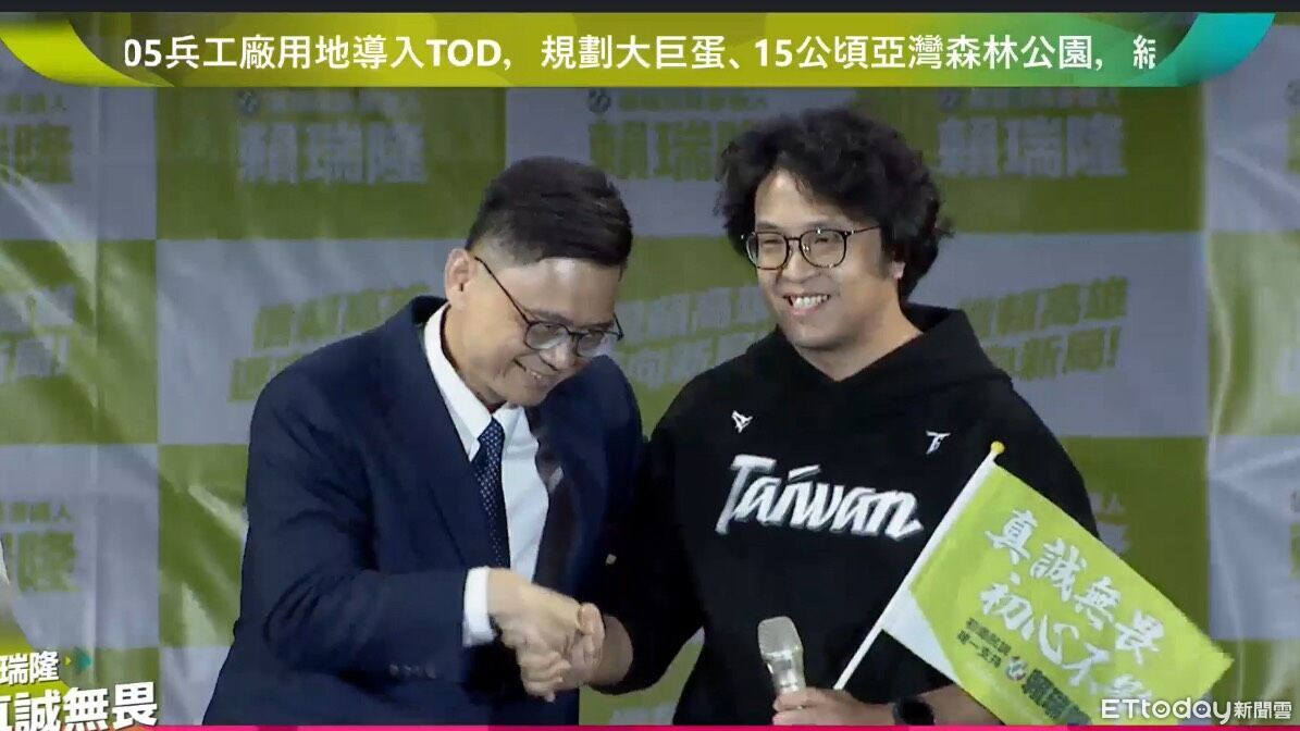 ▲沈伯洋出現在賴瑞隆的初選造勢晚會。(圖/賴瑞隆競選辦公室提供)