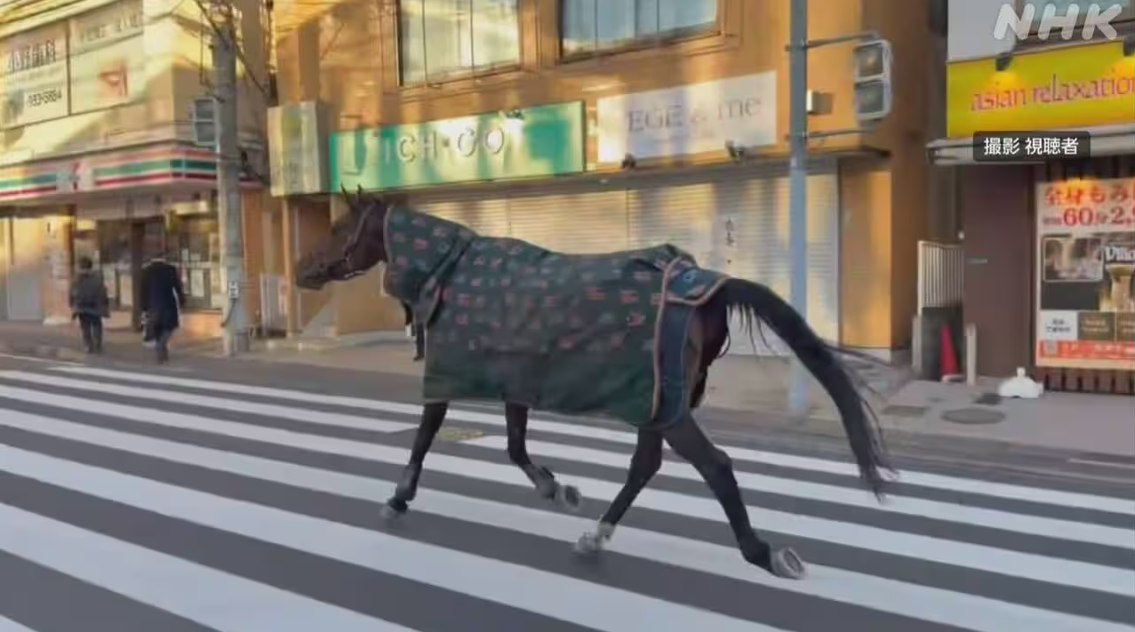 2026年為馬年。不過,日本神奈川縣川崎市今(5)日上午出現罕見景象,一匹馬突然在車流往來的市區道路上徘徊奔馳,民眾立刻通報。警方隨即出動警車,在確保安全的情況下尾隨監控。經查,該馬匹是從附近的明治大學校園逃出,約20分鐘後竟自行返回校園,過程未造成人員受傷,警方正釐清詳細狀況。
