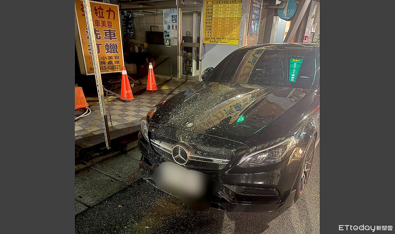 ▲北市中山區4日凌晨一輛黑色賓士車遭潑灑穢物,車主無奈報警。(圖/記者張君豪翻攝、下同)