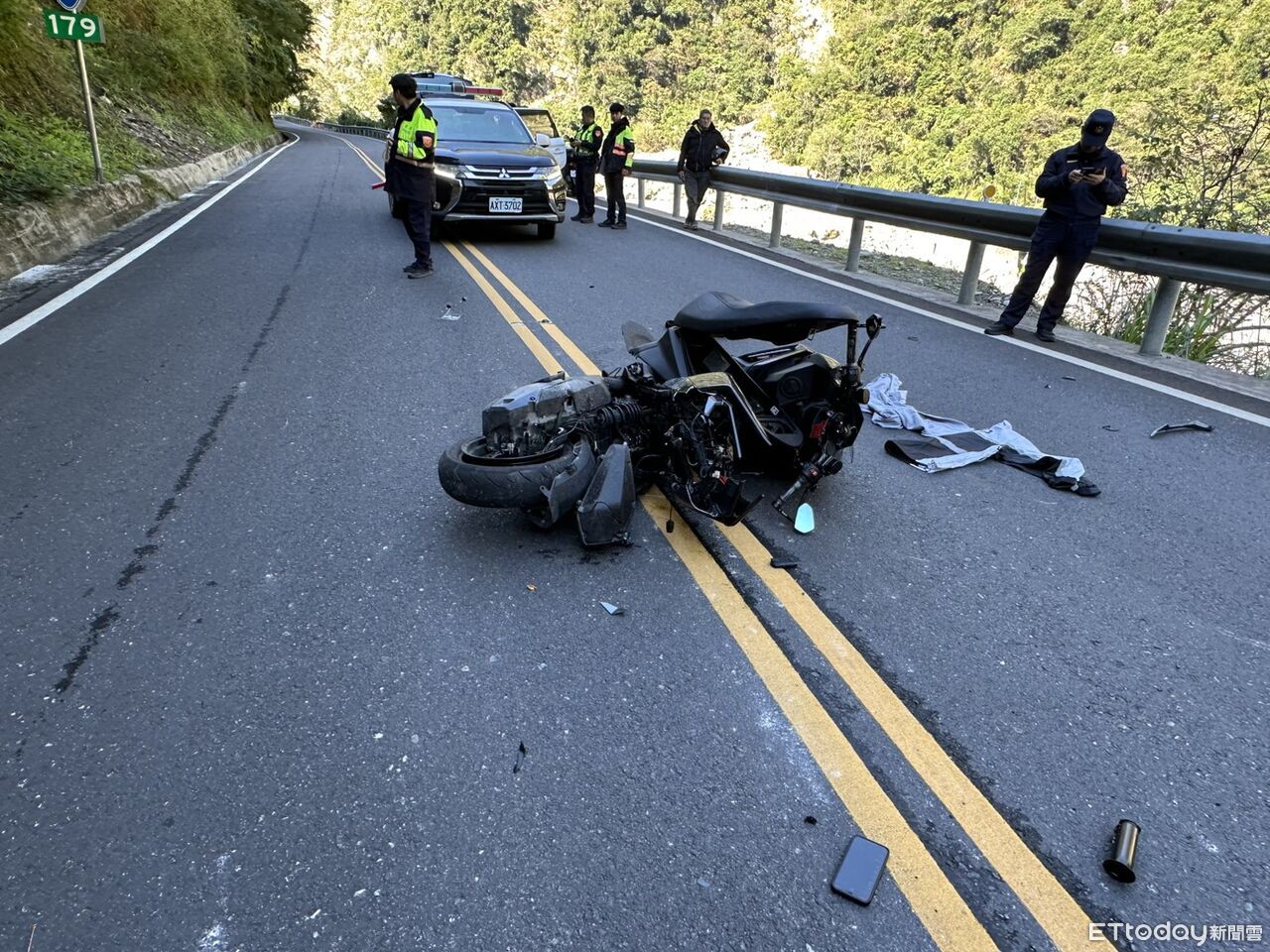 警方初步調查,事件發生地點在台8線179公里處,陳姓男大生騎著普通重型機車沿中橫公路東往西行駛,疑似過彎失控,自撞路邊護欄後,人從邊坡摔落摔落約10米深,機車則橫躺在道路中央,機車殘骸散落一地。