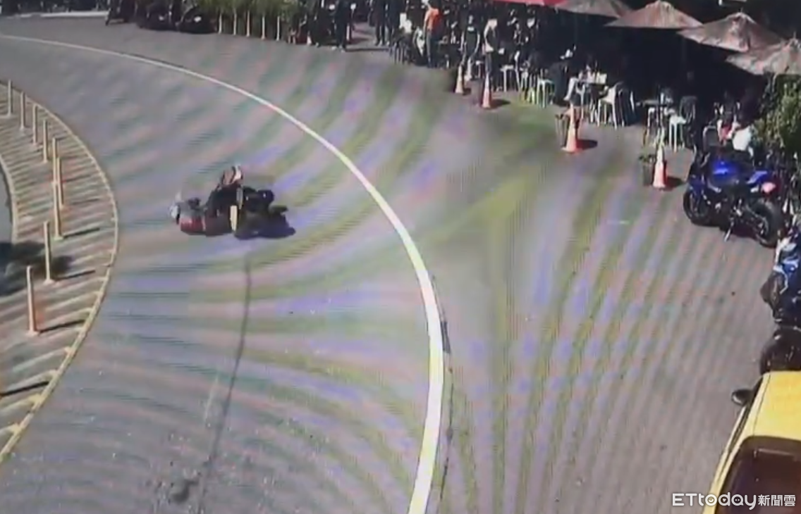 ▲林男過彎打滑,撞倒3台機車。(圖/記者陳以昇翻攝)