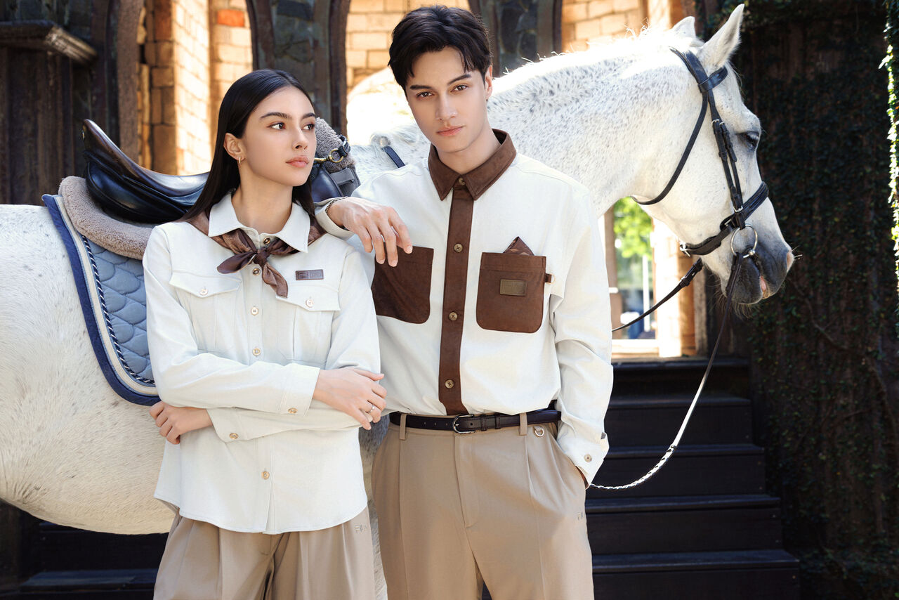 在本次聯名系列中,最具視覺張力的單品非獵裝外套莫屬。男款外套取材自《畫愛烏罕四駿圖卷》,將駿馬神韻融入剪裁與細節設計,兼顧實穿機能與造型層次;女款外套則以《百駿圖卷》為主題,透過印染設計搭配俐落版型,融合都會感與戶外風格,無論日常或正式場合皆能輕鬆駕馭。