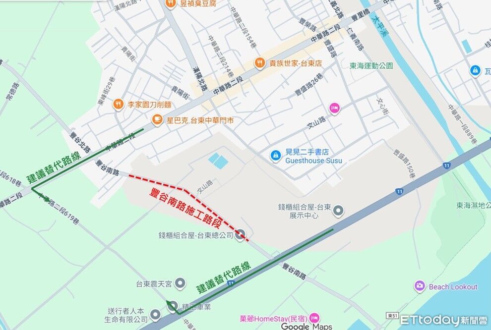 台東縣政府推動「台東縣豐榮、豐樂(南區)區段徵收計畫」,同步辦理豐谷南路道路改善工程,自即日起施工至115年9月20日止。施工期間將進行各項維生管線埋設、道路拓寬及交通安全設施改善作業,相關路段交通動線將受影響,縣府呼籲用路人提前改道行駛,以確保行車安全及工程順利進行。
