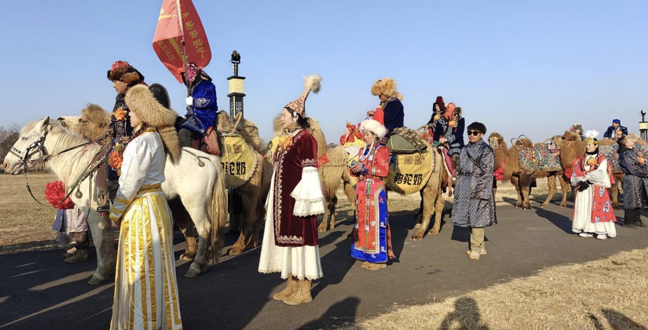 《極目新聞》報導,2026年1月7日上午,來自新疆東天山的駱駝隊終於到達河南洛陽定鼎門,當地舉行了隆重的歡迎儀式。新疆駱駝隊一行到達定鼎門後,領隊手持「通關文牒」交付身穿古裝的主持人,並獻上駝奶,主持人表示「通關文牒」無誤,准許入關,並回贈美酒。