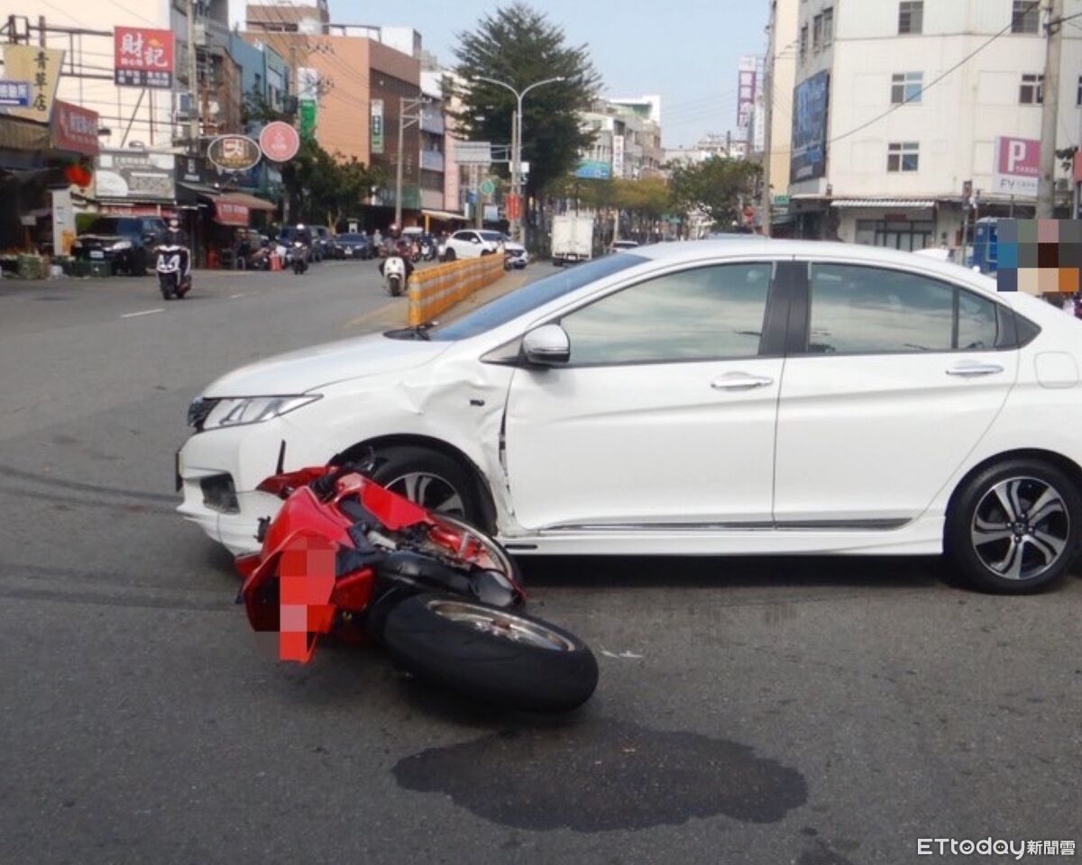 ▲台中沙鹿7日發生一名女子駕車跟杜卡迪重機碰撞 。(圖/民眾提供)