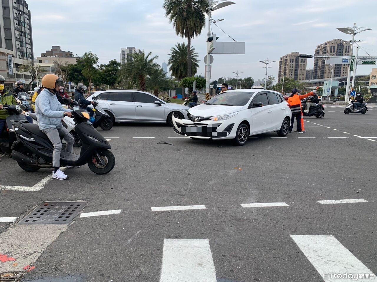 ▲▼何姓男子開車行經中山四路與鎮中路口時,未依號誌違規右轉,造成雙載機車騎士直接撞上,2人噴飛。(圖/記者吳世龍翻攝)