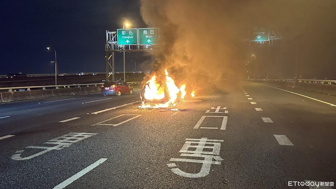 ▲▼國道3號北上212K處晚間火燒車。(圖/記者唐詠絮翻攝)