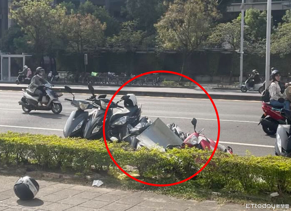 ▲高雄工地「天降鐵板」砸爛3機車,女騎士差幾秒險沒命。(圖/記者賴文萱翻攝)