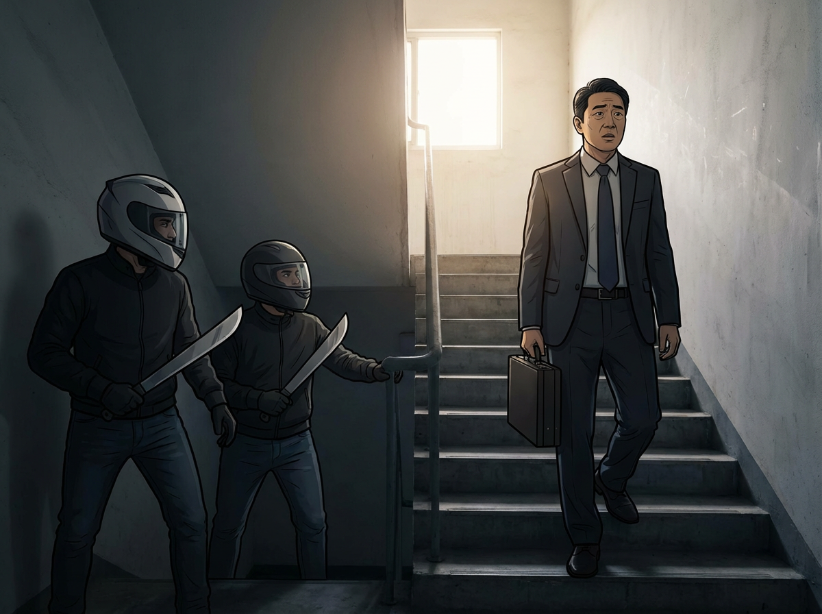 ▲蘇姓男子被控埋伏在樓梯間,砍殺對方。最後遭判刑8年定讞。(AI協作圖/記者吳銘峯製作,經編輯審核)
