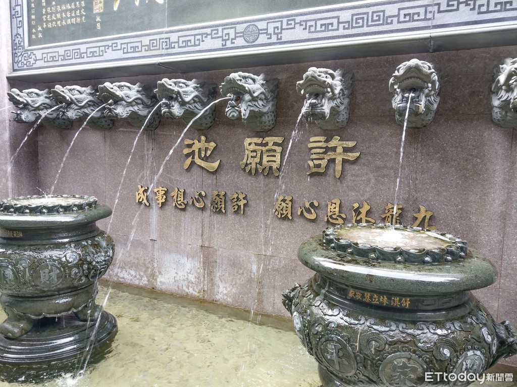 ▲日月潭文武廟內許願池設立兩座聚寶盆,供香客投擲硬幣許願。(資料照/記者白珈陽翻攝,下同)