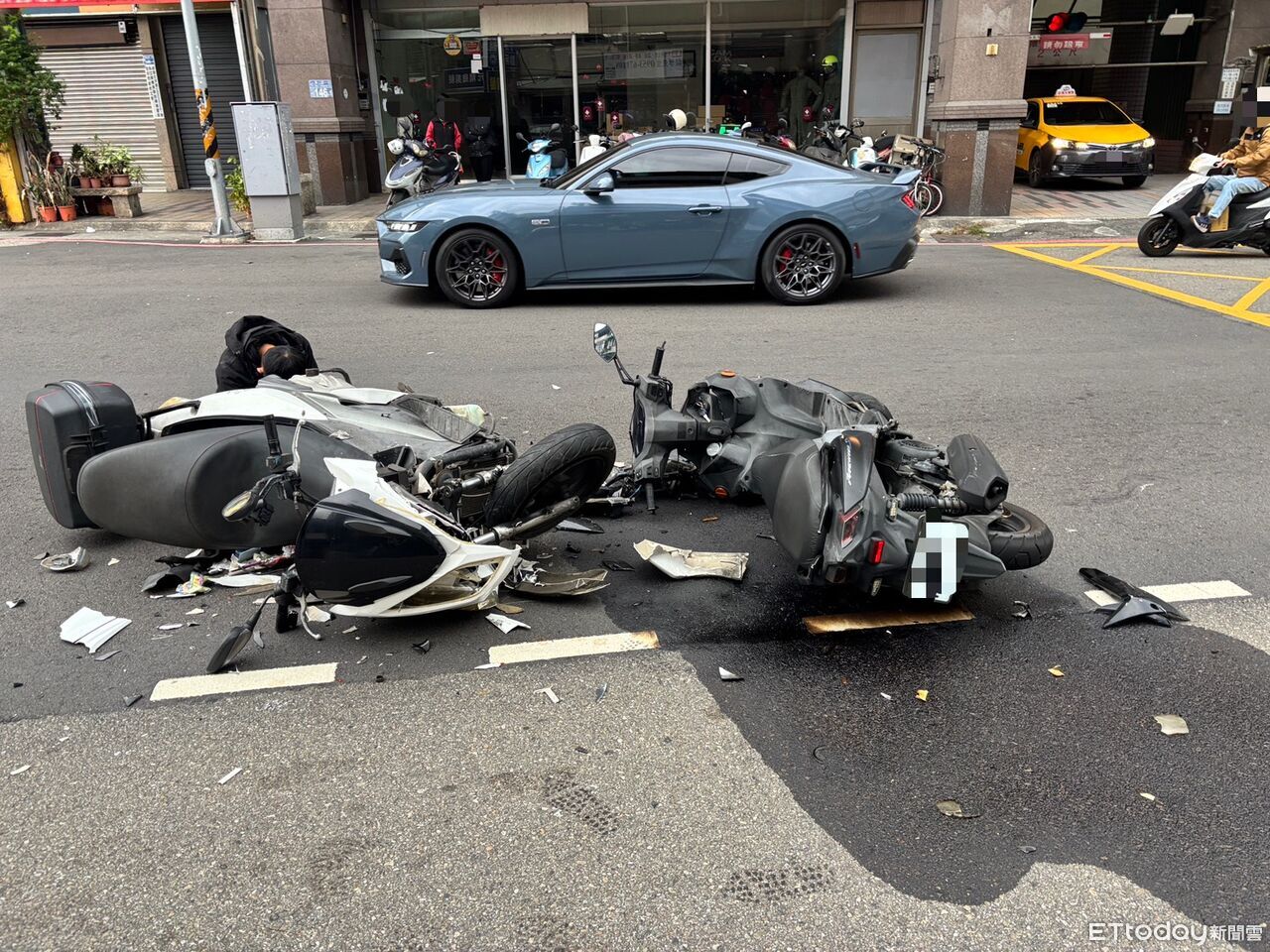 第五分局上午7點29分獲報,東山路一段、東山路一段146巷口發生交通事故,經查,50歲李姓男子騎機車從146巷口出來,在路口與對面21歲張姓男子所騎機車對撞。