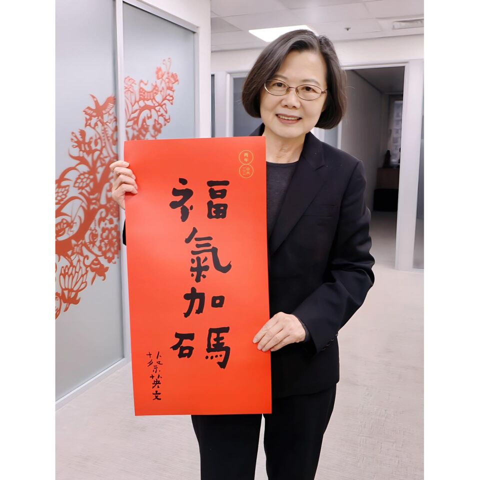 前總統蔡英文今(12日)公布今年的「小英春聯」,她表示,自己在想也許可以平易近人、簡單好懂,所以選了「福氣加碼」四個字,並請了何景窗老師提字,希望在新的一年,大家不僅「福氣加碼」,還可以幸福加碼、勇氣加碼、收入也加碼。今天開始開放給大家下載,自行印製,只要加入,就可以得到下載連結。