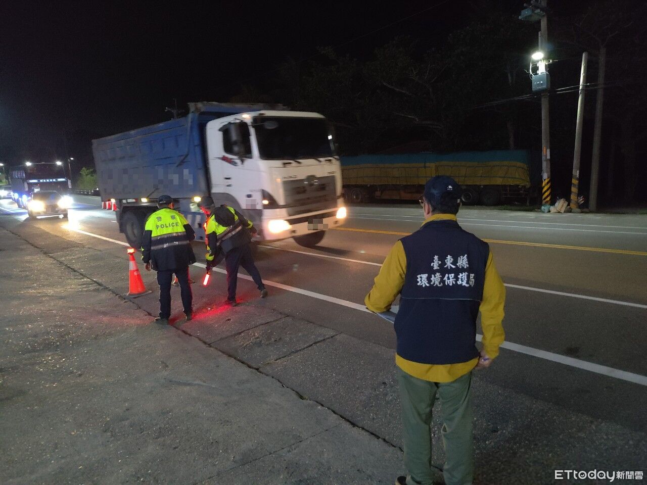 為守護台東優質自然環境,防範不法清運禽畜糞及事業廢棄物污染土地,台東縣政府自108年起整合環保局、警察局及農業處,成立環農警聯合稽查小組,不定期於縣界及重要交通要道設置攔檢點,加強查緝未經熟化的禽畜糞進入農地,並嚇阻非法清運、傾倒或掩埋事業廢棄物行為。