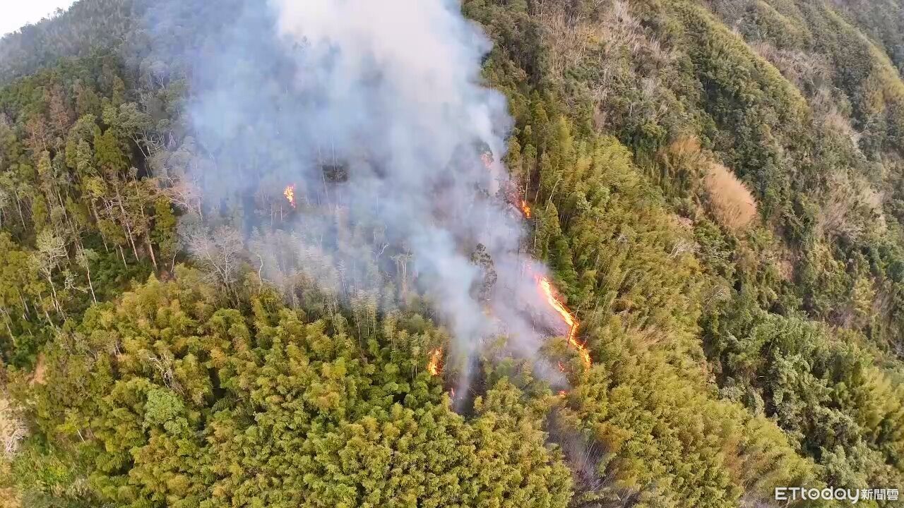 ▲古坑鄉草嶺村石壁大飯店後方山林火警,燃燒面積評估約8公頃。(圖/記者游瓊華翻攝,下同)