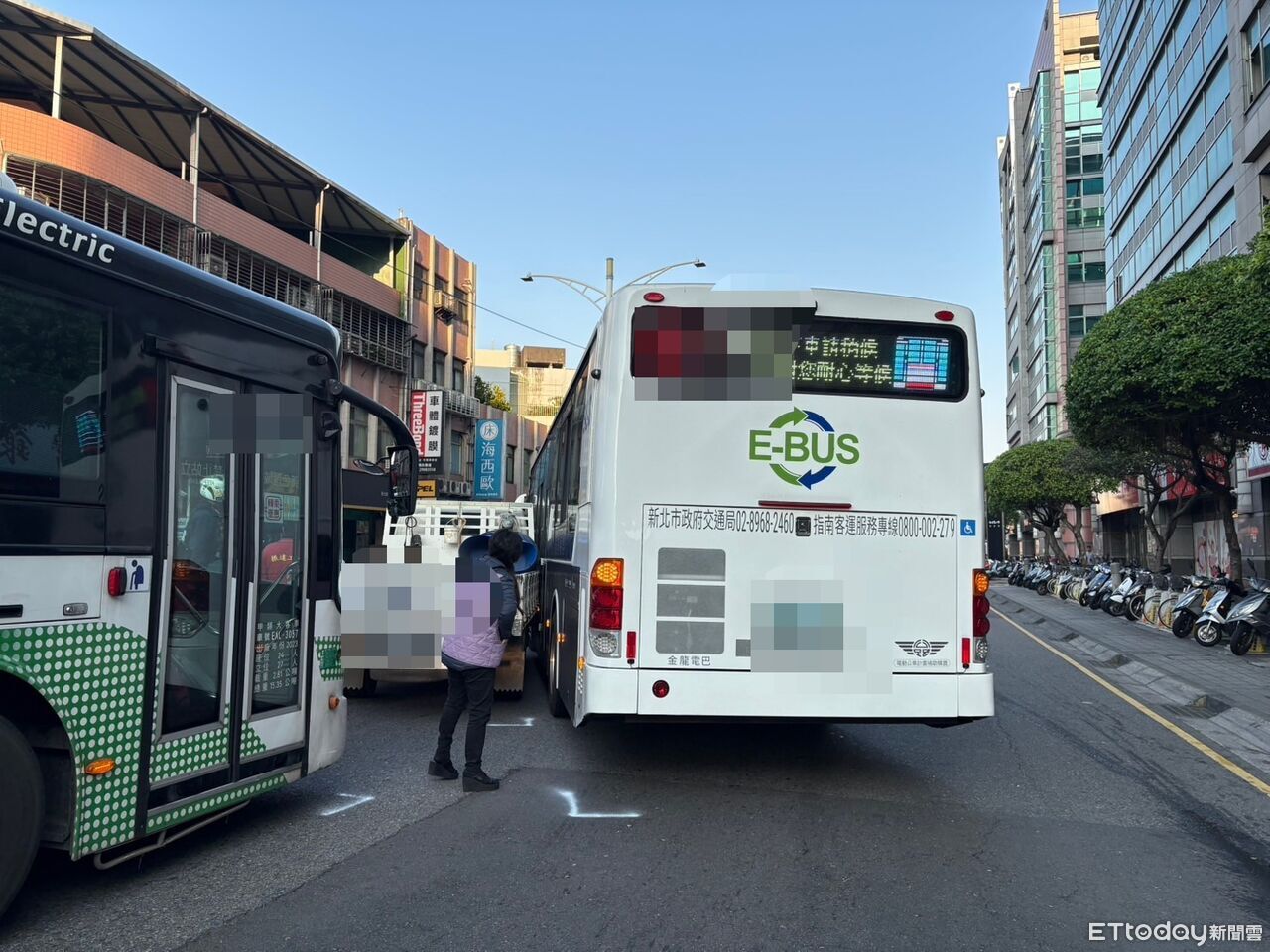 ▲新北市新莊區中正路13日下午3時51分發生一起公車碰撞小貨車事故,釀4人受傷。(圖/記者陳以昇翻攝)