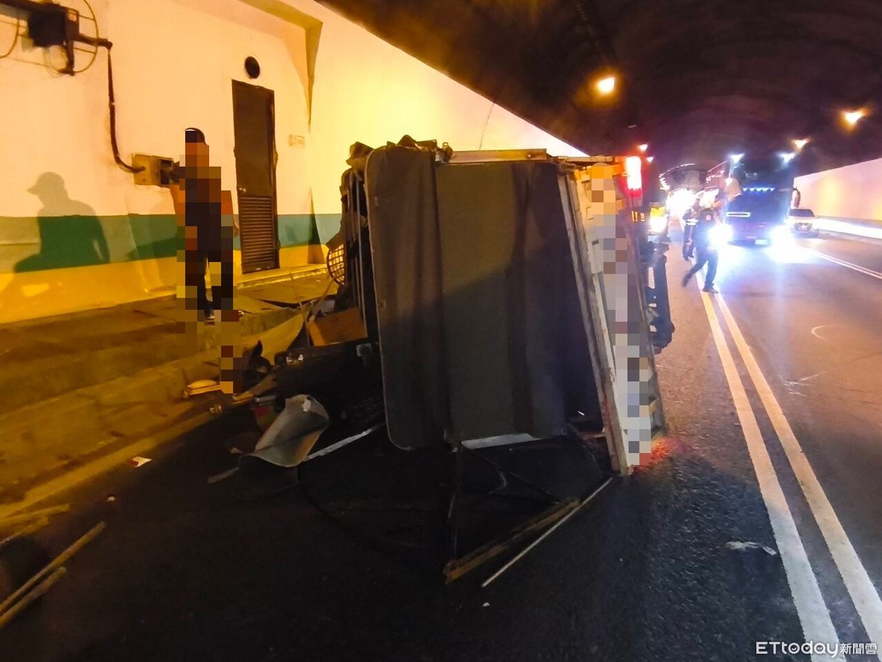 國道3號南向27.7公里處中和往土城方向(新店隧道)14日下午發生翻車事故。警方指出,15時17分許,李男(25歲)駕駛自用小貨車行經該路段時,疑似在變換車道過程中操作不當,自撞外側路肩後翻覆,所幸未波及其他車輛。