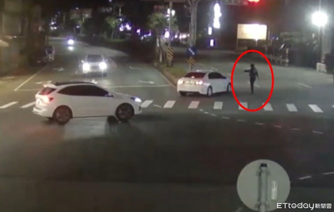 ▲翁男持刀在環金路、中正路口隨機攔車。(圖/記者郭世賢翻攝)