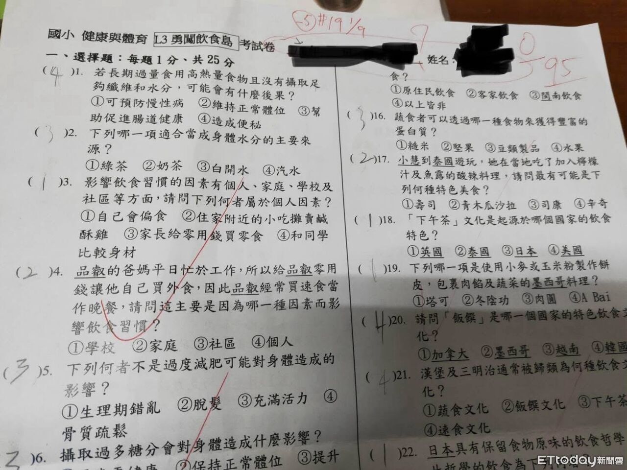 ▲受害學生健康與體育原本考95分,但班導師卻以未寫名字為由,直接改判0分,讓家長痛批班導師挾怨報復。(圖/市議員王立任提供)
