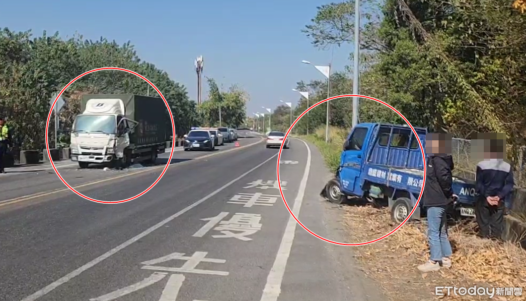 事故發生在14日上午10點42分,67歲柏姓男子駕駛藍色發財車沿光復路左轉水庫路、往石榴路方向行駛時,突然偏離車道,逆向撞上對向白色貨車。