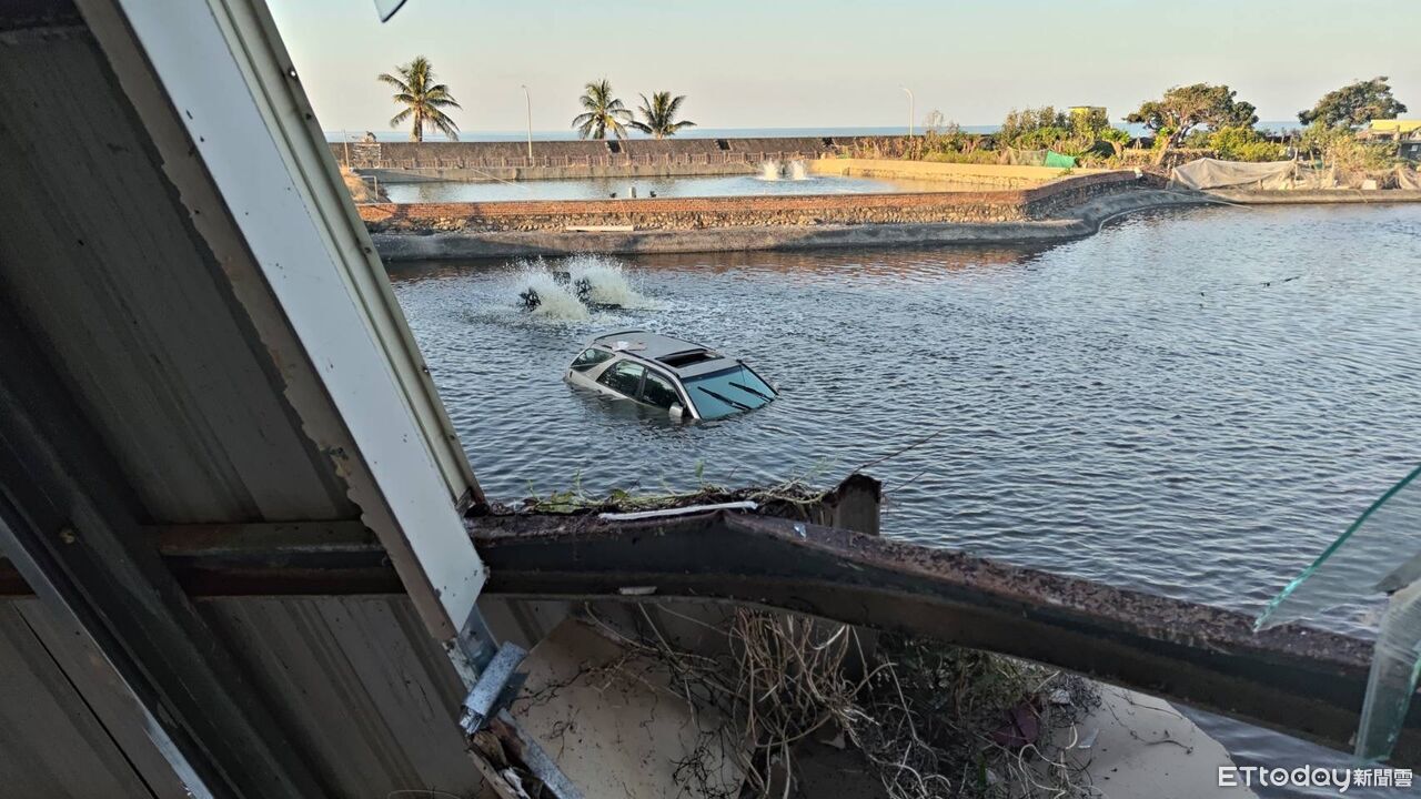 枋寮警分局加祿派出所於1月14日09時22分,接獲店家自行打派出所電話報案,在枋山鄉加祿村發生自小客車掉落魚塭事故,經員警調閱監視器,發現當天凌晨2時9分,41歲徐姓男子駕駛自小客車停放於店家停車場,到旁邊一家超商購物後,回到車內欲起步離開時,不慎撞擊店家玻璃門及內部設施後,隨即掉落後方魚塭。徐姓駕駛傷勢輕微,自行脫困未就醫。